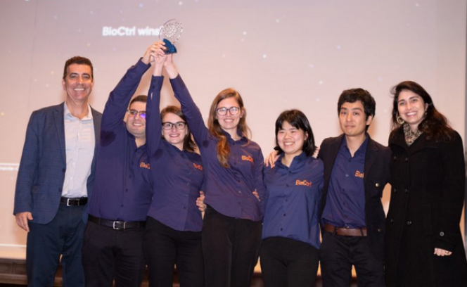 Integrantes da equipe BioCtrl recebem premiação